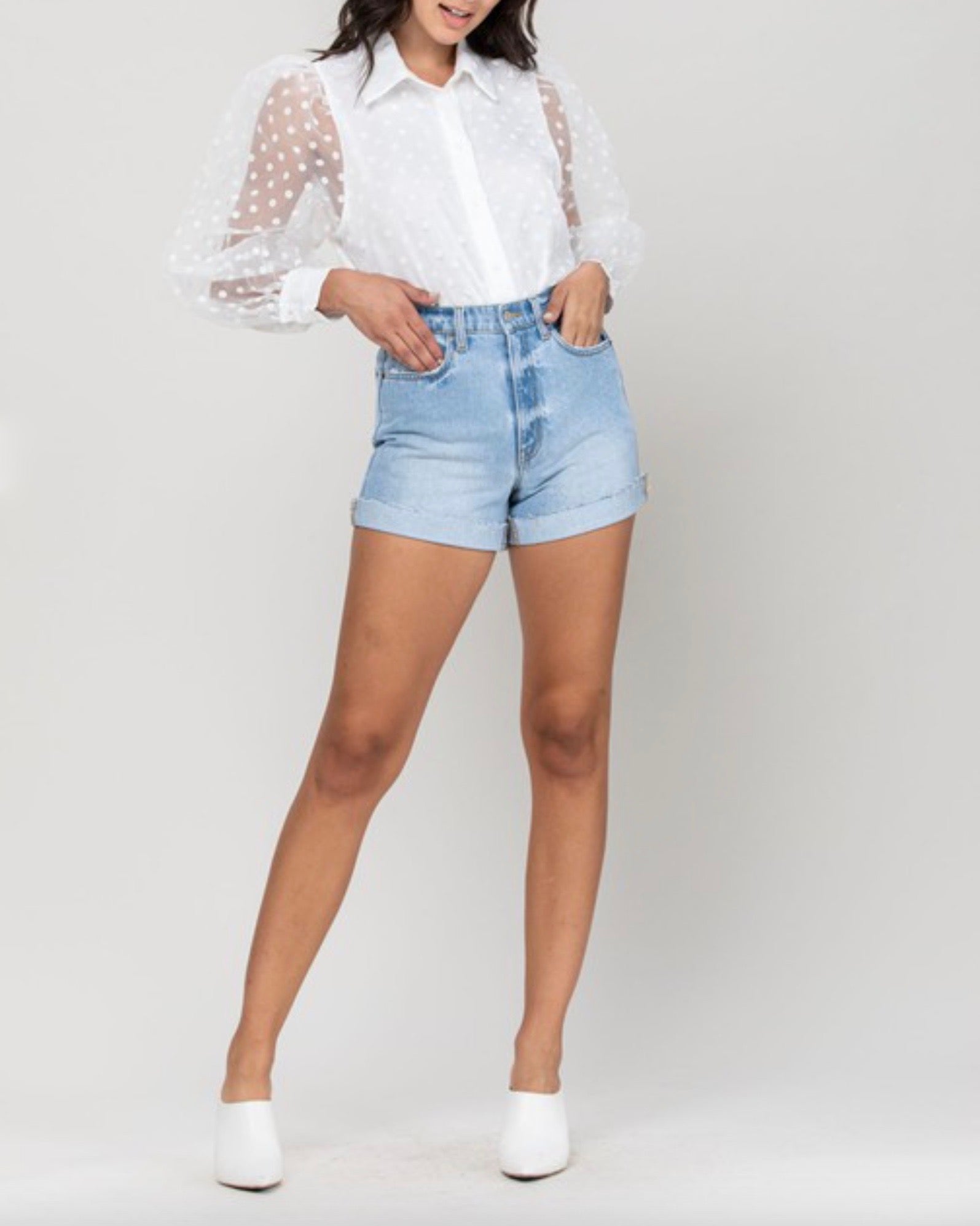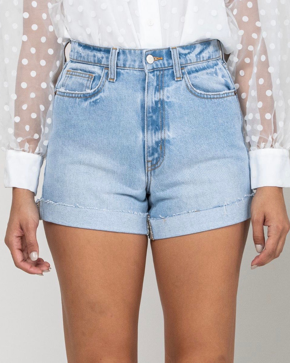 Ckoey High Rise Single Cuff Mom Shorts in Light Denim