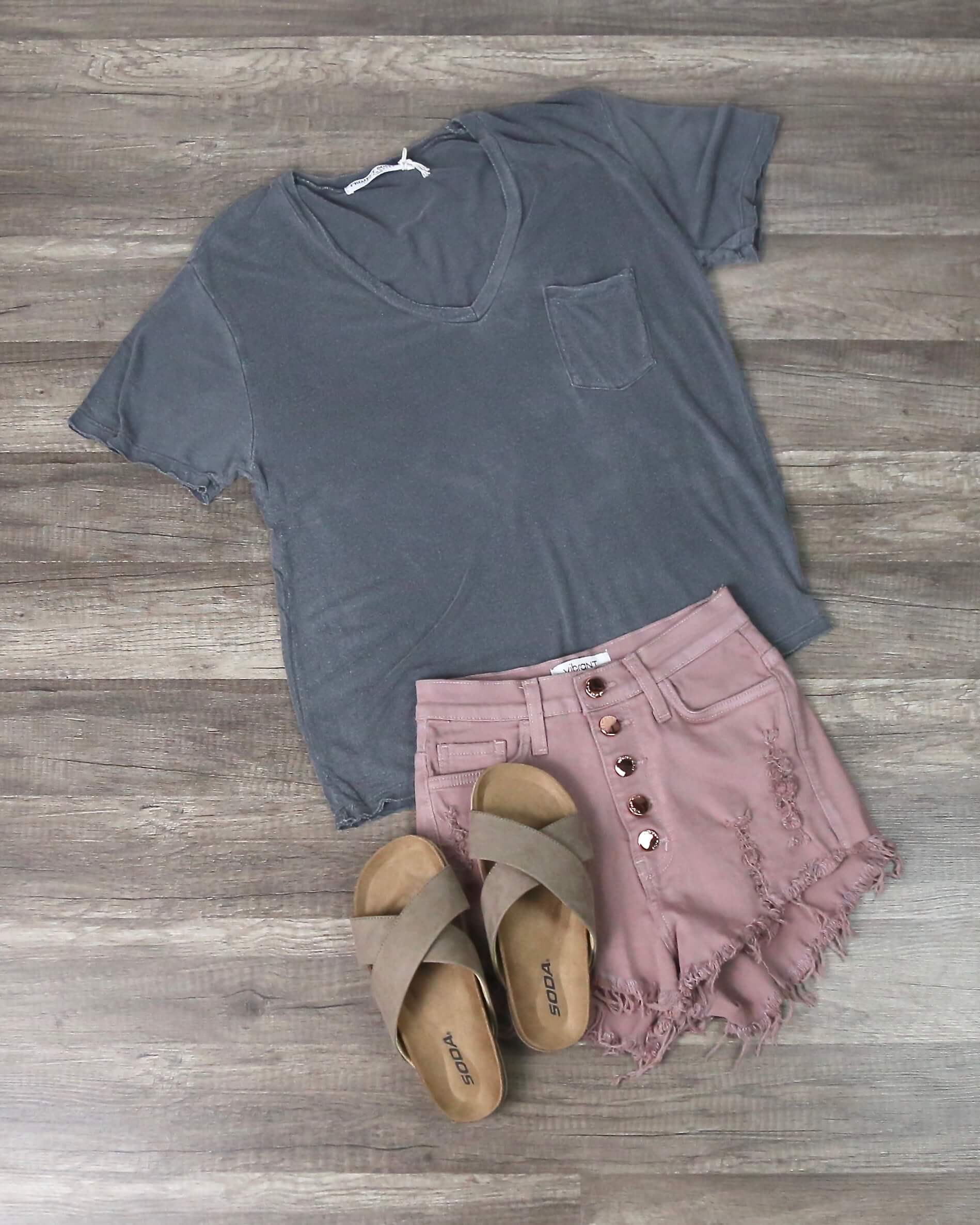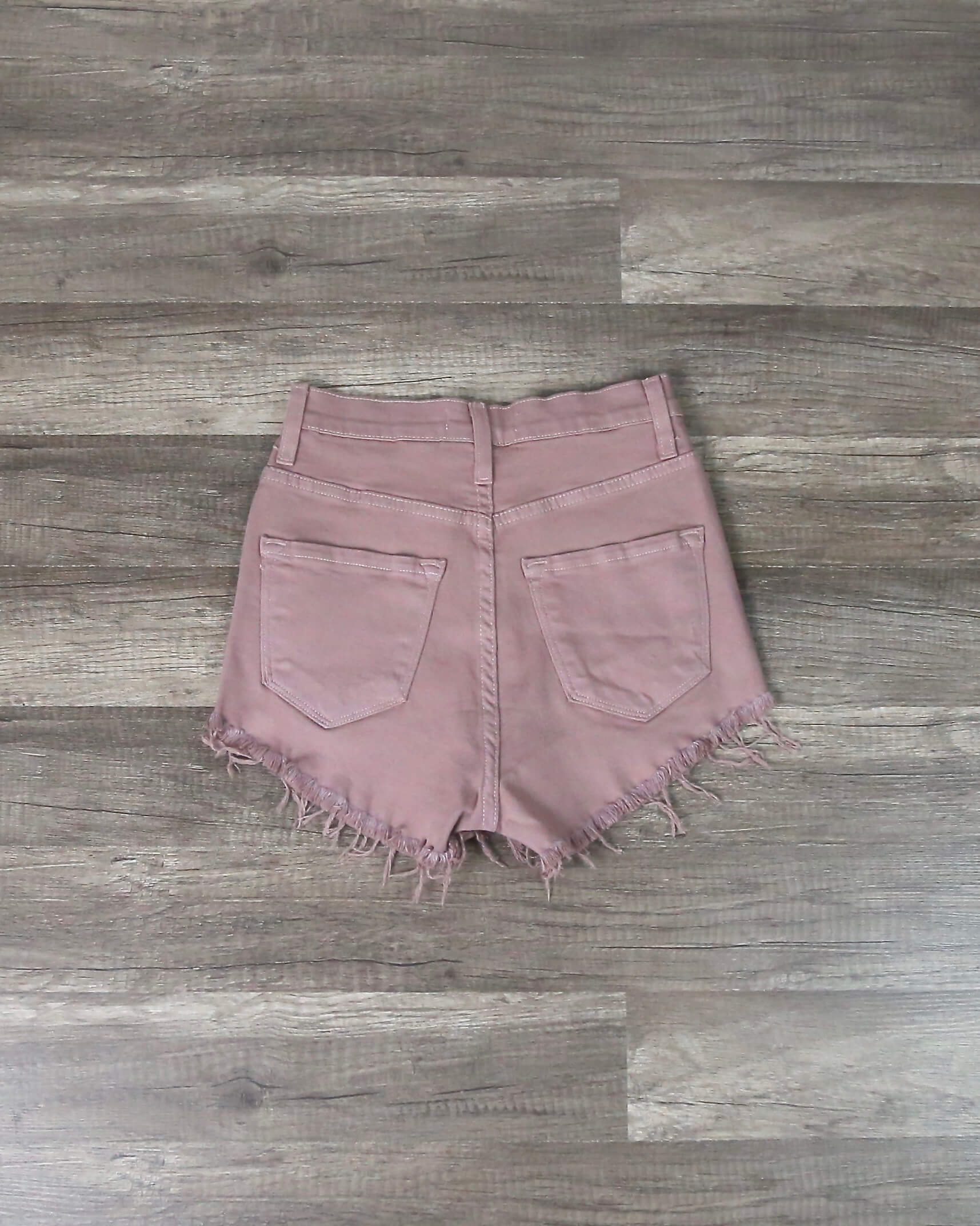 Ckoey High Rise Single Cuff Mom Shorts in Light Denim